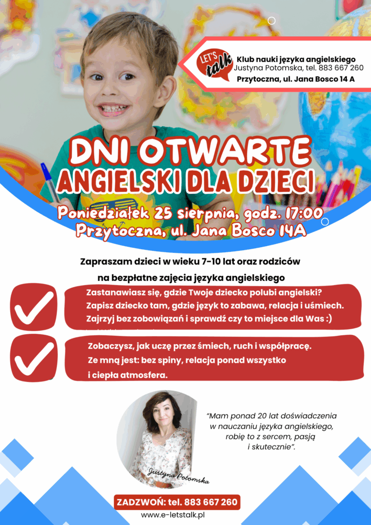 📍 Gdzie? ul. Św. Jana Bosco 14 a , Przytoczna; Let’s talk – Klub nauki języka angielskiego